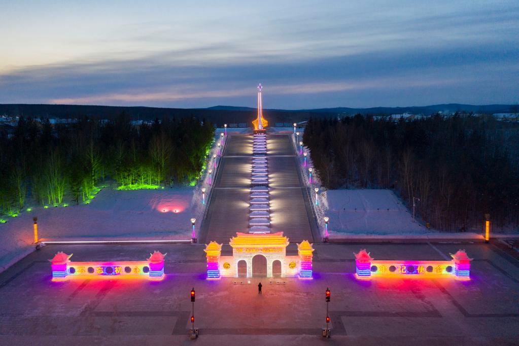 2021年1月8日拍攝的漠河市北極星廣場(無人機(jī)照片)。新華社記者 謝劍飛 攝