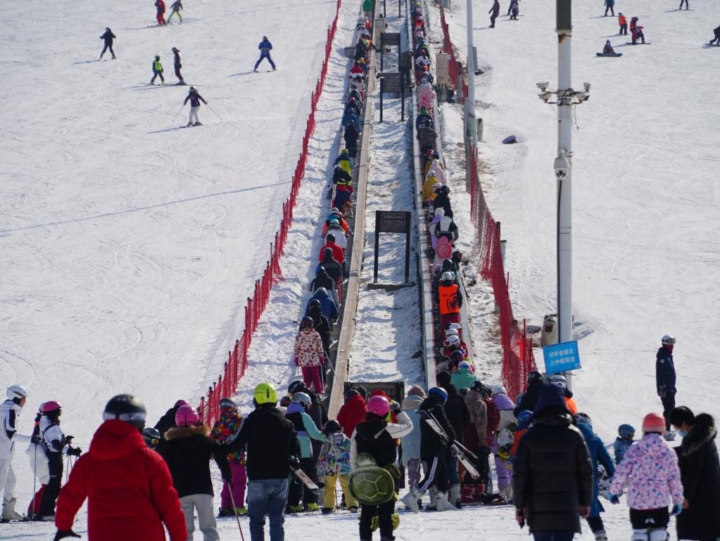 2022年2月17日,在沈陽怪坡國際滑雪場,非雙休日時(shí)游客也很多。新華社記者 崔師豪攝