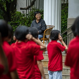 張桂梅觀看新生學(xué)習(xí)課間操(2021年8月24日攝)。新華社記者江文耀攝