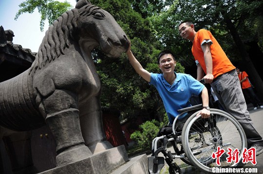 邀請(qǐng)?jiān)诘卣鹬惺軅脑撛?0名傷殘同學(xué)到武侯祠參觀,讓他們體會(huì)傳統(tǒng)文化,感受來(lái)自社會(huì)大眾的關(guān)愛(ài)。