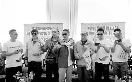 登山隊成員出發(fā)之前,已經迫不及待地開始用手機"直播"