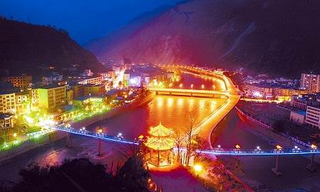 汶川縣城夜景迷人。 (袁蓉蓀 攝 )