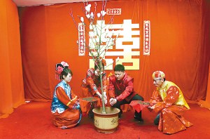 “有請新郎,上前揭開美麗新娘的紅蓋頭……”昨天中午,九龍坡區(qū)巴國城某酒樓,隨著主持人的引導,一場傳統(tǒng)中式婚禮正式開始。新郎曾晰在親朋的見證下,上前迎娶穿著鳳冠霞帔的新娘,賓客們報以熱烈掌聲。