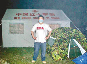 曾晰在德陽當志愿者時的留影