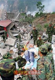 畫面主角:郎錚,這名4歲的娃娃被救出后,在擔(dān)架上的敬禮感動(dòng)了全中國(guó),被稱為“敬禮娃娃”