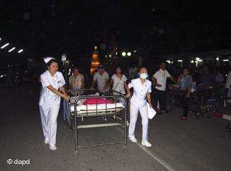 泰國(guó)北部地區(qū)發(fā)生地震后護(hù)士們正推著病床營(yíng)救傷員