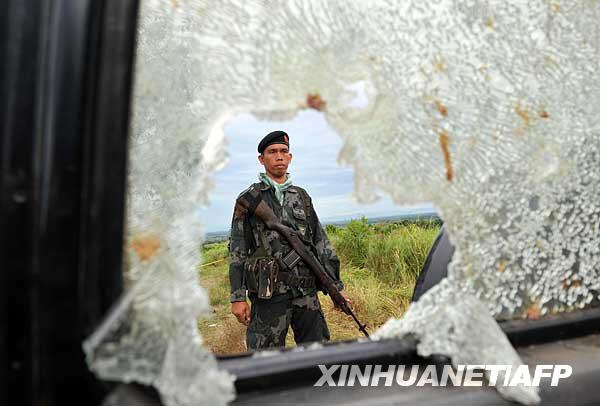 11月25日,在菲律賓馬京達(dá)瑙省安帕圖安鎮(zhèn),一名部隊(duì)士兵在調(diào)查現(xiàn)場警戒。當(dāng)日,菲律賓軍方說,菲安全部隊(duì)當(dāng)天又發(fā)現(xiàn)11具被綁架者遺體,從而使23日發(fā)生的政治綁架和屠殺事件的遇害者人數(shù)上升至57人。新華社/法新