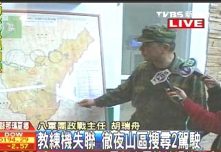 今天下午,臺(tái)軍空軍官校表示,曾接獲高雄縣那瑪夏鄉(xiāng)民電話通報(bào),稱曾聽(tīng)到巨大碰撞聲。但瑪夏鄉(xiāng)下午3時(shí)許起濃霧,增加了搜救困難度。 (陳佳慧)
