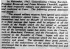 | 1945年,日本簽署《無(wú)條件投降協(xié)議》,并同意接受《波茨坦公告》。一直到近年來(lái),日本、美國(guó)以及毛澤東領(lǐng)導(dǎo)的中國(guó)都認(rèn)為,《開(kāi)羅宣言》是停戰(zhàn)的基石。就我所知,《開(kāi)羅宣言》通知日本,它必須為投降作好準(zhǔn)備,宣言描述了日本必須歸還所掠奪領(lǐng)土的大致輪廓。 |