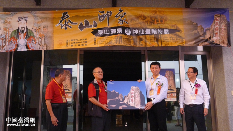 2013年10月,泰安市政府在臺南市善化區(qū)東岳殿,舉行了“泰山印象——泰山麗景特展暨泰安市人民政府惠贈泰山攝影圖片”儀式。(圖片來源:泰安市臺辦)