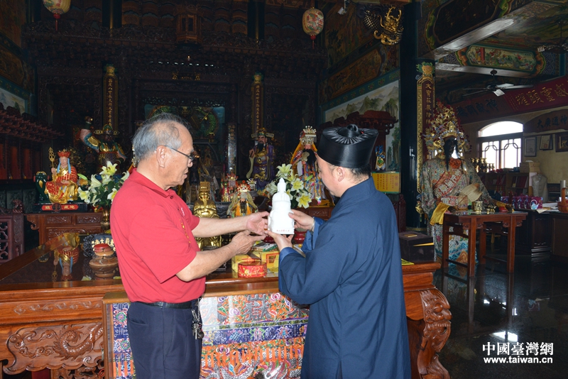 2018年4月9日至14日,泰安市道教文化交流團一行赴臺灣地區(qū)開展道教文化交流活動。在臺期間,與相關(guān)人士進行了親切友好的座談交流。交流團一行與多座宮廟廣泛進行道教文化交流,舉辦祈福法會,保佑一方平安。所到之處,當(dāng)?shù)貙m廟信眾都舉行隆重的歡迎儀式,展示了大陸正統(tǒng)的道教風(fēng)范與文化內(nèi)涵。
