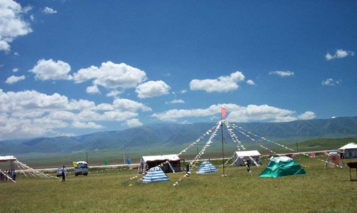 金銀灘草原,位于青海省海晏縣境內(nèi)。它的西部同寶山與青海湖相臨,北、東部是高山峻嶺環(huán)繞,南部與海晏縣、三角城接壤(三角城是西?みz址,建于西漢王莽秉政時(shí)期),在這方圓1100平方公里的大草原上,有麻皮河和哈利津河貫穿,這就是青海有名的金灘、銀灘大草原。藏民兄弟世世代代生活在這塊熱土地上,有30多萬支牛羊在這里生息,是典型的牧區(qū)。金銀灘的黃金季節(jié)是7、8、9三個(gè)月,鮮花盛開,百鳥飛翔,尤其是百靈鳥兒的歌聲,動(dòng)聽迷人。