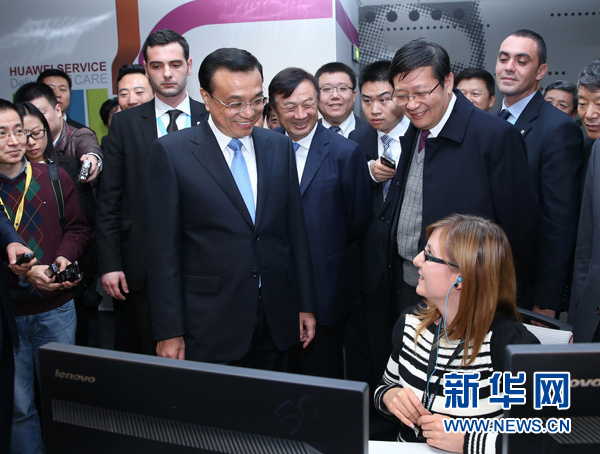 11月27日,正在羅馬尼亞訪問的國務(wù)院總理李克強參觀中國華為技術(shù)羅馬尼亞公司。這是李克強同當?shù)貑T工親切交談。新華社記者 龐興雷攝