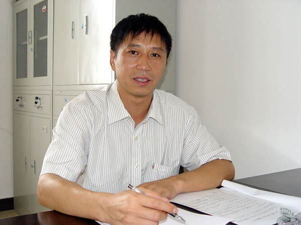 2005年8月7日,沈浩同志在為建設新小崗趕寫規(guī)劃設想。吳曉泉 攝