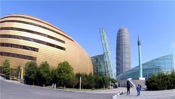 這是位于河南省鄭州市鄭東新區(qū)的河南藝術(shù)中心和千璽廣場(chǎng)(2012年10月11日攝)。