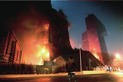 公訴機關(guān)在起訴書中載明了這場大火的起火細節(jié):禮花彈爆炸后的高溫星體落入央視配樓主體建筑頂部擦窗機檢修孔內(nèi),引燃檢修通道內(nèi)壁裸露的易燃材料,從而引發(fā)火災(zāi)。