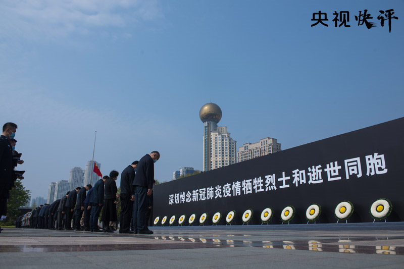 清明寄哀思。今天上午10時,習(xí)近平、李克強(qiáng)、栗戰(zhàn)書、汪洋、王滬寧、趙樂際、韓正、王岐山等黨和國家領(lǐng)導(dǎo)人來到中南海懷仁堂前,向新冠肺炎疫情犧牲烈士和逝世同胞默哀3分鐘。全國各地汽車、火車、艦船鳴笛,防空警報(bào)鳴響,舉國哀悼。