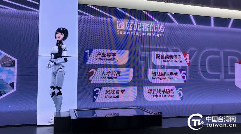 智能機器人講述園區(qū)概況。(中國臺灣網 王琳 攝)