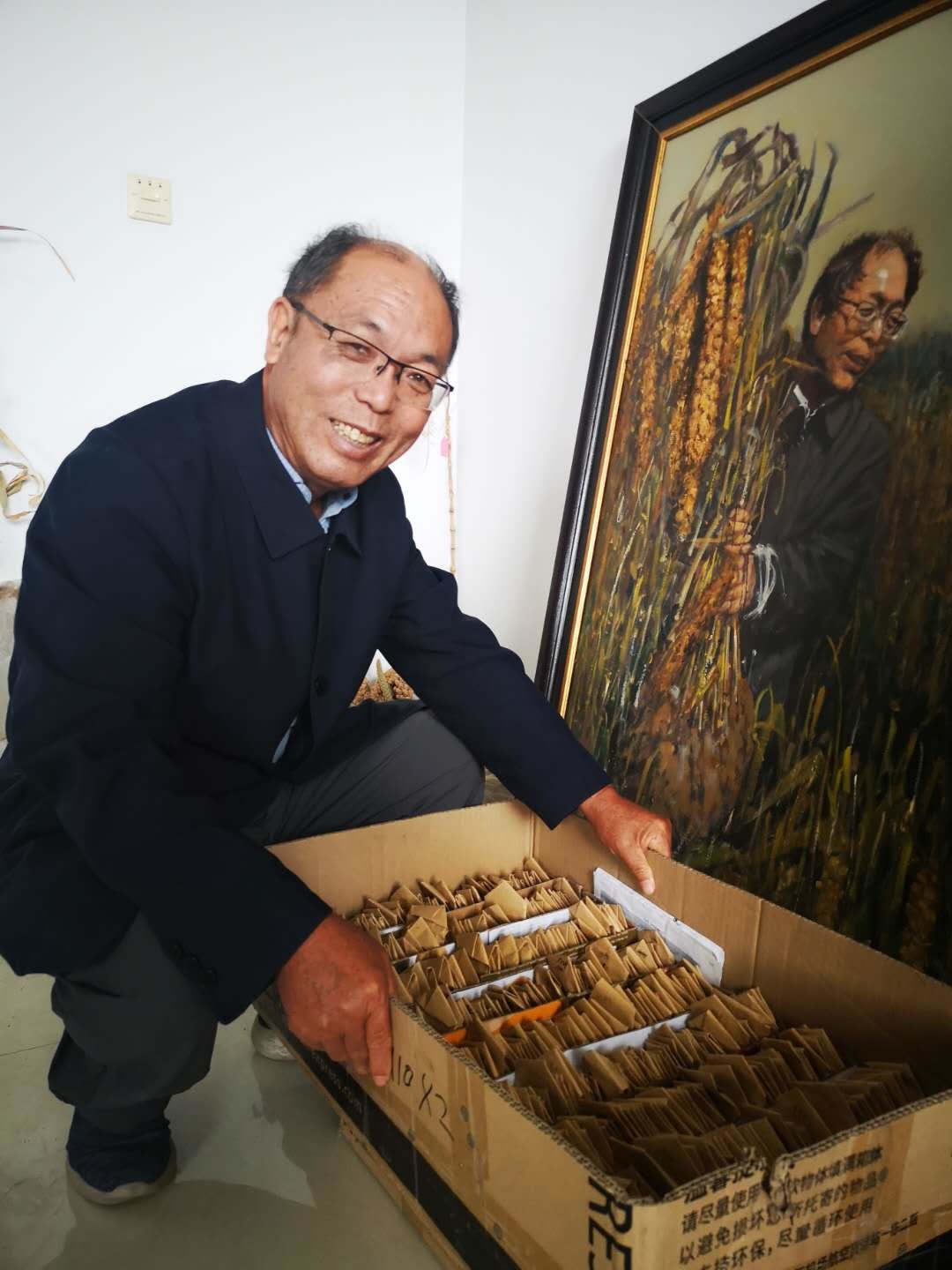 趙治海展示3600多組谷子實(shí)驗(yàn)材料。記者 鄭世繁攝