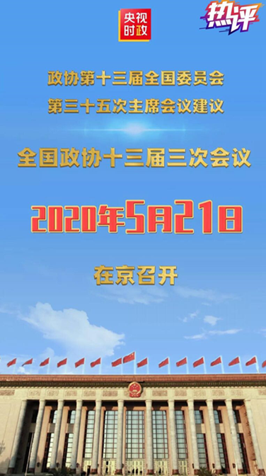政協第十三屆全國委員會第三十五次主席會議建議:全國政協十三屆三次會議于2020年5月21日在北京召開。