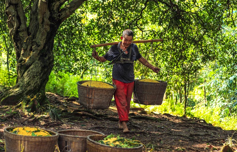 9月24日,四川省瀘州市江陽(yáng)區(qū)鄰玉街道天堂村的村民在運(yùn)送打收的桂花。
