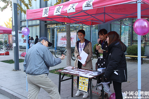 中國(guó)臺(tái)灣網(wǎng)11月12日訊(記者 崔瀝心)流行的粵語(yǔ)歌曲,追過的港臺(tái)影視,機(jī)智的互動(dòng)問答,經(jīng)典的武俠劇配音,誘惑的美食天堂,奇幻的景點(diǎn)觀光,熱辣的舞臺(tái)表演……今日,為打破地域的限制,拉近兩岸四地青年的距離,讓學(xué)子足不出校,深度體驗(yàn)港澳臺(tái)文化,北京師范大學(xué)第三屆港澳臺(tái)文化節(jié)開幕活動(dòng)港澳臺(tái)一條街在邱季端體育館門前舉行。