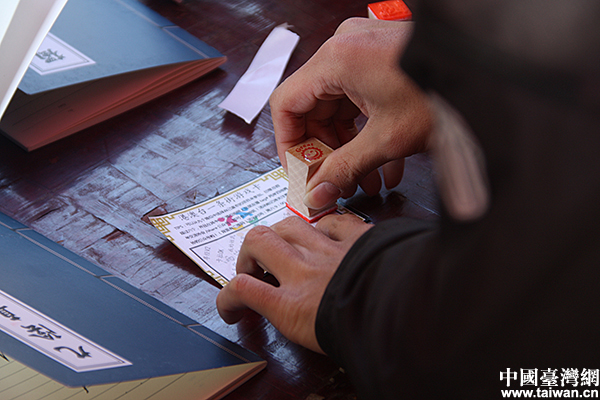在游戲紙上收集印章兌換紀(jì)念品(中國(guó)臺(tái)灣網(wǎng) 記者 崔瀝心 攝)