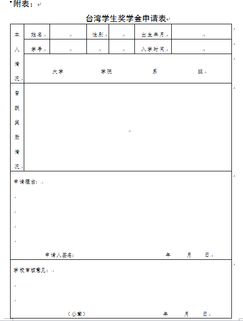 附表:臺灣學(xué)生獎學(xué)金申請表