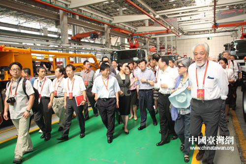 統(tǒng)促會參訪團興致勃勃地走進三一重工集團的生產(chǎn)車間。(中國臺灣網(wǎng) 王君飛 攝)