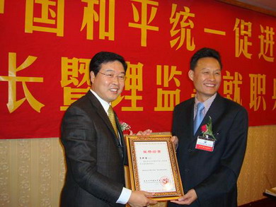 鐘大使向吳少康會(huì)長(zhǎng)(右一)頒發(fā)證書