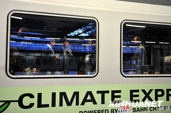 12月5日,在比利時布魯塞爾火車站,“氣候快車”準備出發(fā)。這列“氣候快車”當天從這里出發(fā),途中?康聡坡『蜐h堡,最終抵達丹麥的哥本哈根。這列藍色和綠色涂裝的火車上載有400多人,包括聯(lián)合國氣候變化大會的與會代表、聯(lián)合國官員、環(huán)保人士和記者等。此次活動由國際鐵路聯(lián)盟、聯(lián)合國環(huán)境規(guī)劃署、世界自然基金會等組織共同發(fā)起,意在喚起人們關注公共交通給氣候帶來的影響和宣傳乘坐火車的環(huán)保益處。新華社記者徐速繪攝