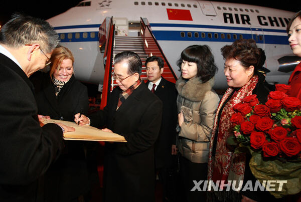 12月16日,中國國務(wù)院總理溫家寶抵達(dá)丹麥?zhǔn)锥几绫竟,出席哥本哈根氣候變化?huì)議。這是溫家寶抵達(dá)后在貴賓簽名簿上簽名。新華社記者龐興雷攝