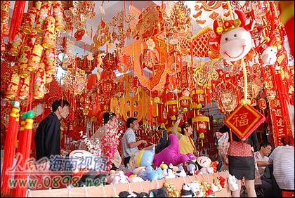 1月16日,海南三亞的街頭年味漸濃。農(nóng)歷牛年將至,三亞市民紛紛來到街上,選購大紅燈籠、中國結(jié)、春聯(lián)等,迎接新春佳節(jié)的到來。