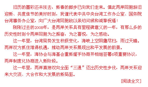 [中新網(wǎng)]王毅:兩岸關(guān)系玉汝于成 09年方向明確前景光明