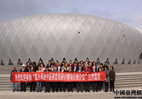“筑臺兩地中醫(yī)藥文化研討暨項目推介會”臺灣嘉賓參觀貴陽奧林匹克體育中心合影(貴陽市臺辦 李慶斌 攝)