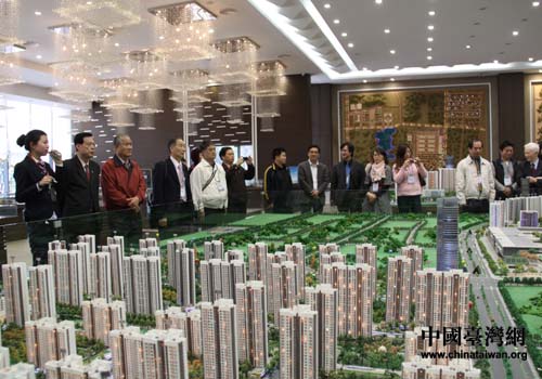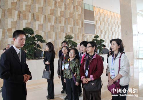 貴陽國際會議展覽中心管理人員正在向臺灣同胞們介紹酒店情況(貴陽市臺辦 李慶斌 攝)