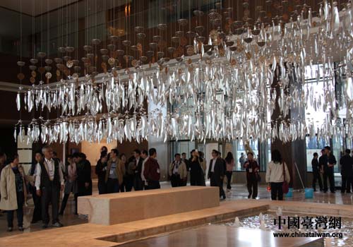 貴陽國際會議展覽中心很高檔的酒店大廳裝飾品,帶給大家的不禁是驚喜,更多的是震撼(貴陽市臺辦 李慶斌 攝)