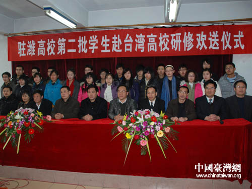 中國臺灣網(wǎng)1月15日濰坊消息 1月14日,第二批駐濰高校赴臺研修學(xué)生歡送儀式舉行,42名學(xué)生將在2月中下旬赴臺學(xué)習(xí)。據(jù)悉,2009年,濰坊開創(chuàng)山東省高等職業(yè)教育的先河,曾選派18名學(xué)生赴臺研修。隨著駐濰高校與臺灣高校交流的深入,濰坊已成為全國職業(yè)教育對臺交流最活躍的地區(qū)。