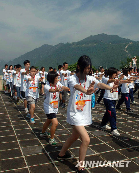 7月15日,參加“兩岸青年舞太極聚長城”活動的學生在長城上學練太極。新華社發(fā)(卜向東 攝) |