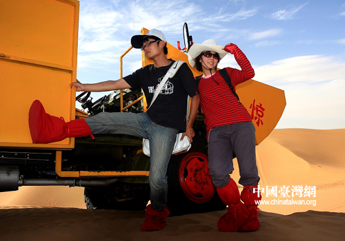 在騰格里大沙漠留影多有紀念意義。∥洳 攝 (圖片來源:寧夏臺辦)