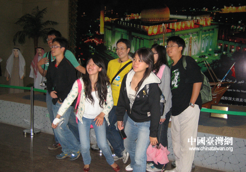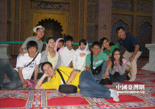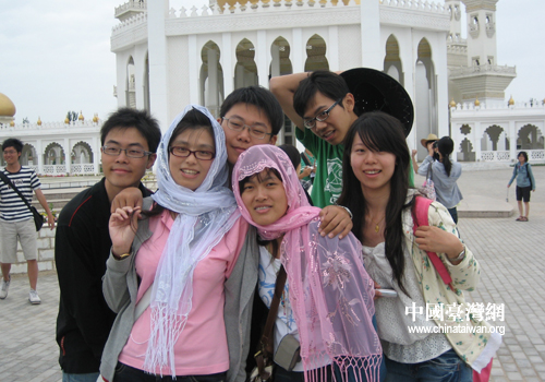 同學(xué)們?cè)诮鸨梯x煌的禮拜大殿前留影(圖片來源:寧夏臺(tái)辦)