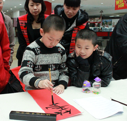 活動現(xiàn)場吸引了眾多市民游客競相參與,一些剛開始學(xué)習(xí)書法的小朋友也來了興致,借來文房四寶,秀一段個人書法,很多市民游客抓住這次與兩岸書法名家面對面交流的難得機遇,請教老師,根據(jù)自身對龍年的美好憧憬,讓書法名家為其量身定做個性春聯(lián)。(許燕如)