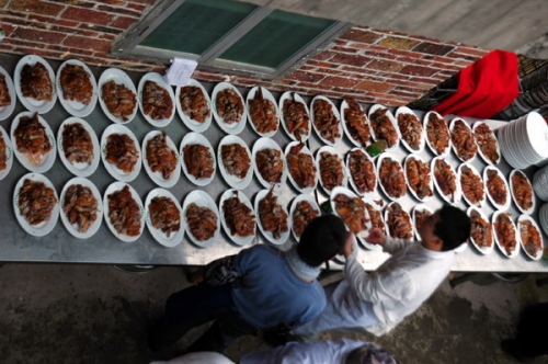 被譽為“東北大森林之口”的林口縣從初一到十五,每家每戶都要掛上紅燈籠,一直亮堂著的紅燈籠將雪地裝點得倍有過年的氣氛,如果從高處看,整個村莊如渾身散發(fā)著火熱的感情,零下40℃的氣溫絲毫也不覺得寒冷。孩子們則要拎著紅燈籠到鄰居家或是親戚朋友家串門,能收獲大利是。外面一派白茫茫,孩子們提著大紅燈籠、打扮得色彩斑斕、奔走在夜色流光里,有一種溫暖滿溢出來。除夕的年夜飯,一般都是從傍晚開始,吃完了也不撤宴,大家一直“圍爐”、嘮嗑,這也是取“年年有余”的意頭。漢子們喝喝小酒,姑娘們多數(shù)是在忙乎餃子的事情。都是現(xiàn)包的餃子,面是從那天早上就開始發(fā)的,搟皮、做餡,一直要延續(xù)到凌晨正點的時候。
