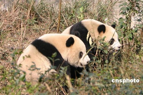 贈(zèng)臺大熊貓“團(tuán)團(tuán)”“圓圓”通過長期同居生活,它倆更加恩愛,經(jīng)歷了地震后感情更加如膠似漆,誰也離不開誰。圖為12月中旬,“團(tuán)團(tuán)”“圓圓”在一起玩耍,兩小無猜,憨態(tài)可愛。 中新社發(fā) 霍潺 攝