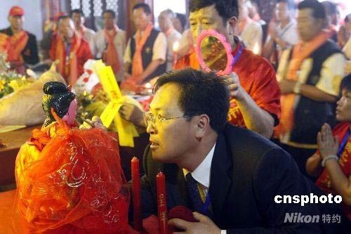 5月8日,農(nóng)歷4月初4,比干3100年誕辰慶典在河南衛(wèi)輝舉行,被譽(yù)為“海神”的媽祖也在今年的紀(jì)念活動(dòng)中“認(rèn)祖歸宗”。據(jù)考證,媽祖系林氏后裔,與天下林氏同屬一脈。此次比干3100周年誕辰活動(dòng)共有來(lái)自世界五百?gòu)?qiáng)、中國(guó)五百?gòu)?qiáng)的200多家知名企業(yè)代表和客商前來(lái)投資洽談。中新社發(fā)慎重?cái)z