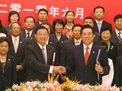 | 6月29日,海峽兩岸關(guān)系協(xié)會(huì)和臺(tái)灣海峽交流基金會(huì)第五次領(lǐng)導(dǎo)人會(huì)談在重慶舉行,雙方簽署了《海峽兩岸經(jīng)濟(jì)合作框架協(xié)議》(簡(jiǎn)稱ECFA),標(biāo)志著兩岸經(jīng)濟(jì)關(guān)系進(jìn)入新階段。7月12日,中共中央總書記胡錦濤在會(huì)見中國(guó)國(guó)民黨榮譽(yù)主席吳伯雄時(shí)指出,這是一份為民謀利、互利雙贏、影響深遠(yuǎn)的好協(xié)議,符合兩岸同胞共同利益,符合中華民族整體利益。9月12日,協(xié)議正式生效。 |