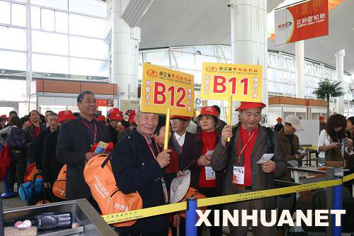 2009年“相聚金門、情游臺(tái)灣”千人赴臺(tái)游首發(fā)團(tuán)由952人組成,其中80%是來(lái)自浙江義烏的中老年人,該團(tuán)在浙江杭州乘坐專列于3月13日抵達(dá)廈門。旅游團(tuán)在臺(tái)灣停留時(shí)間為5天4夜,將分別游覽臺(tái)北、高雄、嘉義、臺(tái)中、新竹等地區(qū)。新華社記者 項(xiàng)開(kāi)來(lái) 攝
