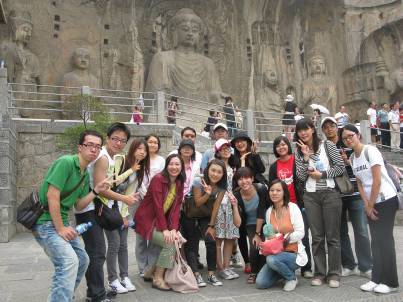 下午,同學(xué)們來到九朝古都洛陽,他們冒著酷暑參觀了世界文化遺產(chǎn)——龍門石窟。過去只是在書本上讀到過一點(diǎn)的中華文化的厚重瑰寶展現(xiàn)在同學(xué)們面前,讓同學(xué)們忘記了酷熱,不斷地向?qū)в伟l(fā)問,相互之間也在不停的合影留念。