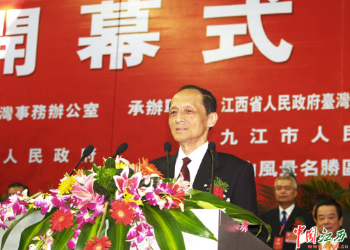 中國(guó)國(guó)民黨副主席江丙坤在2006贛臺(tái)(九江·廬山)經(jīng)貿(mào)合作研討會(huì)開(kāi)幕式上致辭。(楊冗晟 攝)