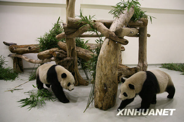 12月23日,“團團”“圓圓”在適應新家環(huán)境。新華社發(fā)